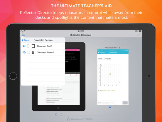 Reflector Director also helps you easily connect to Reflector 2, even on limited and restricted networks. Using clever Bluetooth* and network auto-detection methods, Quick Connect® and QR codes, Reflector Director easily connects the teacher`s devices to classroom computers running Reflector 2.