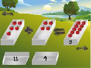 Všude samá jablka! Ale kdo je spočítá? Pomozte spočítat jablka v bedýnkách nebo najděte správný košík, do kterého se vejdou všechna jablka.