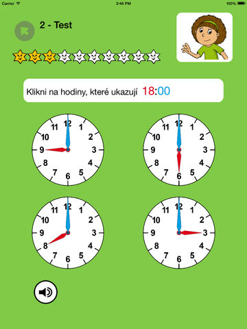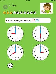 – zobrazí se 4 ciferníky a úkolem je najít hodiny, které zobrazují např. 11:45
