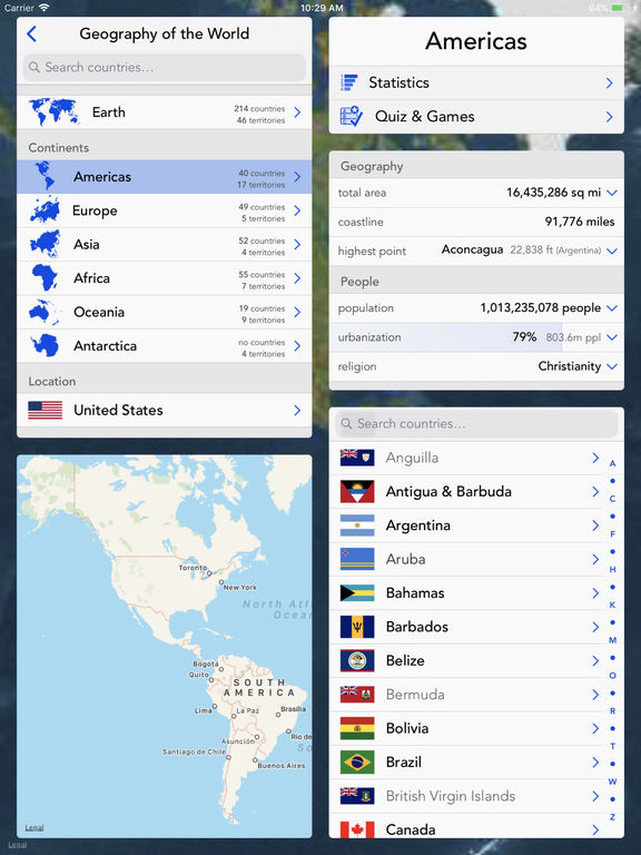 The most advanced geographic encyclopedia and quiz on the App Store.