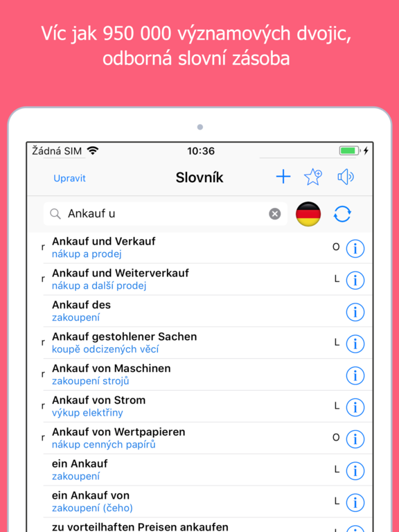 | Německo-český slovník XXL Jazyk aplikace:  čeština Cena: 379 CZK Dostupné: