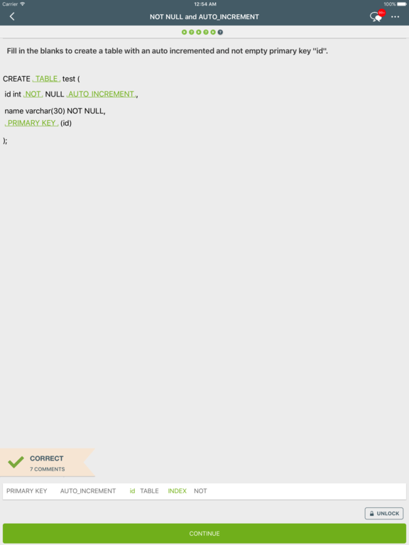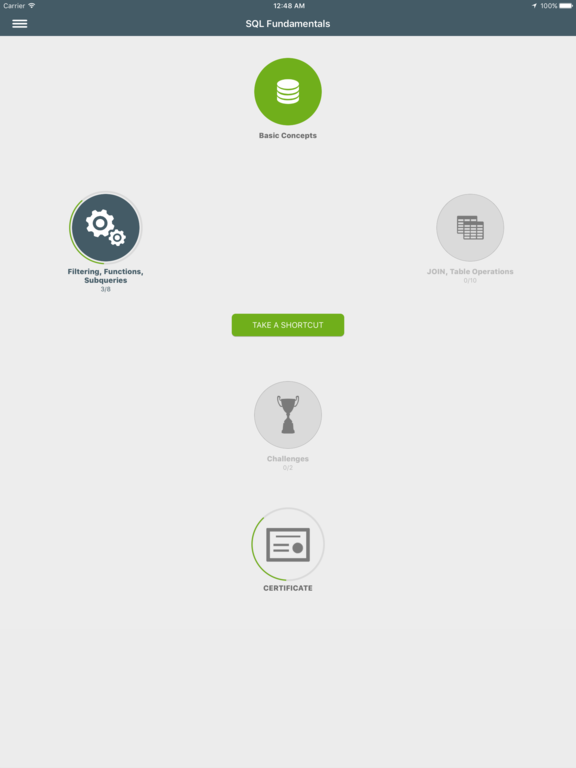 Whether you want to become the next greatest database designer, or you would simply like to have the ability to query databases from code, SoloLearn will take you through the fundamentals of SQL in a highly interactive, rapid, and effective manner. Learn SQL covers an array of SQL-related topics, such as: