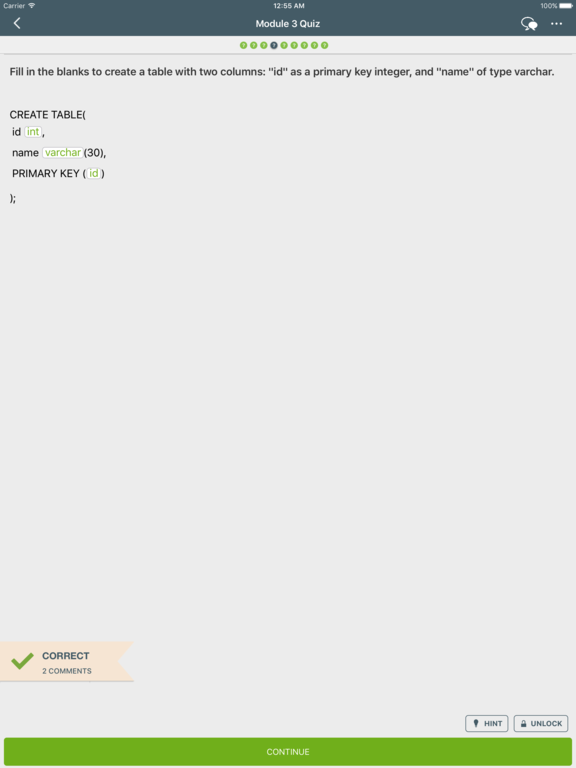 Create, access, and manipulate databases. At the same time, collect points, unlock levels and achievements, and compete with other learners from around the world!