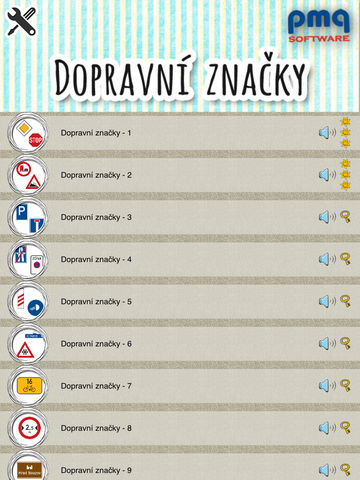 Učení dopravních značek zábavnou formou. Program je cílen na děti, ale prověří každého, kdo se potřebuje naučit všechny dopravní značky. Celkem je 360 dopravních značek. Všechny názvy namluveny v češtině, takže při učení nemusíte nic číst. Tři hvězdičky u lekce označují úspěšné splnění skoro bez chyby.