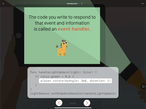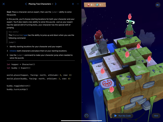 • Apple-created lessons guide you through the core concepts of programming by using code to solve puzzles
