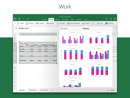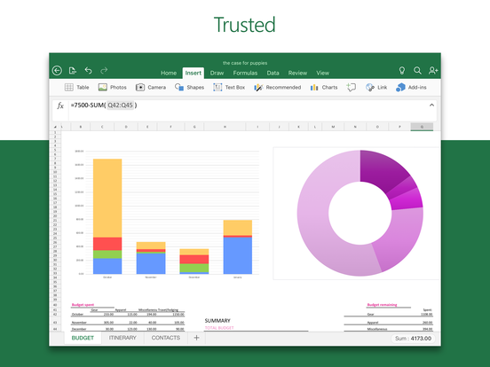 Budget, review spreadsheets and run data analysis on the go. Customise tables and spreadsheets the way you want with robust formatting tools and great features. The productivity app lets you build your spreadsheet to meet your specific needs, for whatever you`re doing.