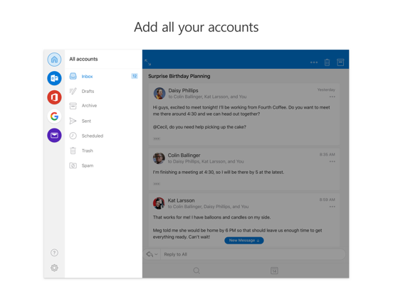 Outlook lets you bring all of your email accounts and calendars in one convenient spot. Whether it`s staying on top of your inbox or scheduling the next big thing, we make it easy to be your most productive, organised and connected self.