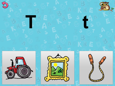 Úkolem v této hře je ukázat na obrázek, který začíná na zobrazené písmeno.