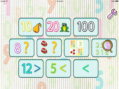 - Zobrazí se 2 čísla a úkolem je vybrat znaménko rovná se, menší, větší.