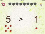 - Které číslo je větší? Zobrazí se 2 a 7 . Po odpovědi se pod čísly zobrazí hrušky, jahody pro lepší ilustraci.