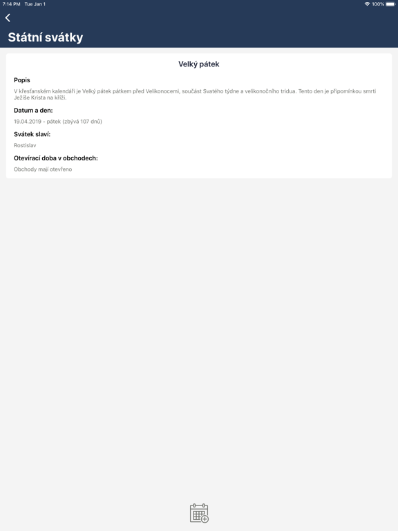 | Státní svátky Jazyk aplikace:  čeština Cena: 25 CZK Dostupné: