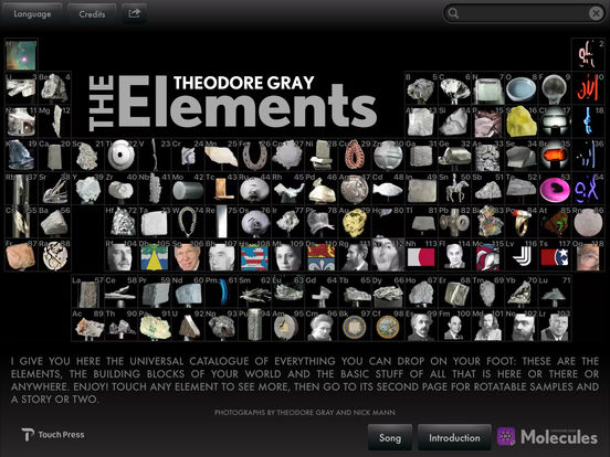 The Elements is based on the internationally best-selling hard cover edition of The Elements, by Theodore Gray, Popular Science Magazine`s Gray Matter columnist. But it goes way beyond what is possible on paper.