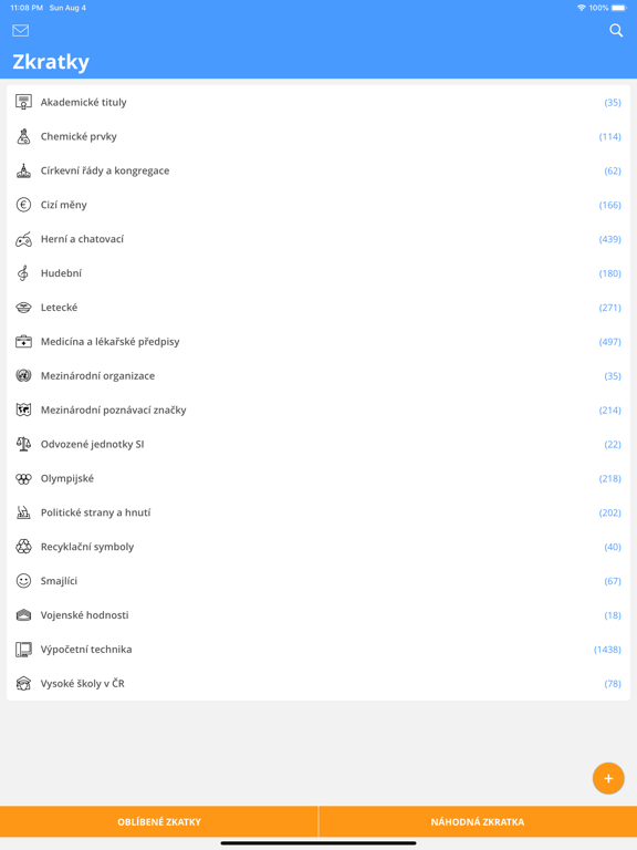 - více než 4000 zkratek rozdělených do 18 kategorií