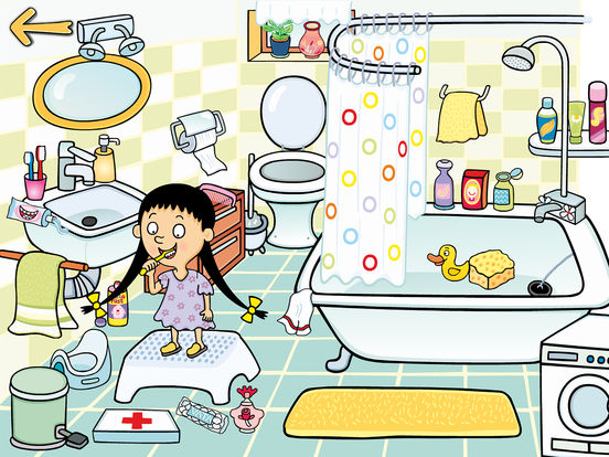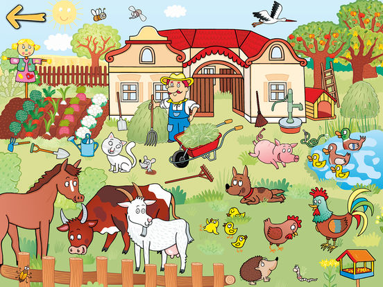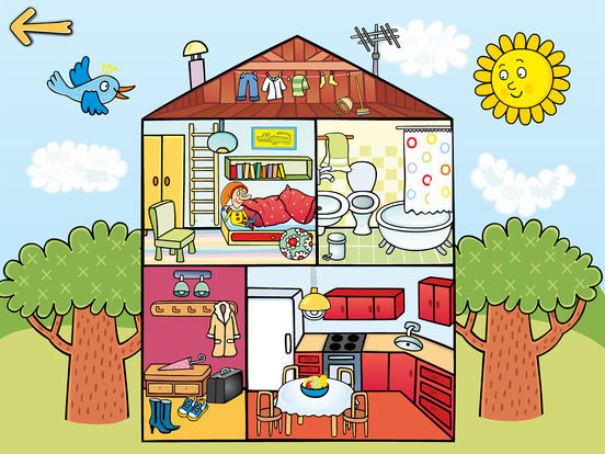 Po spuštění si zvolíte postavičku chlapce nebo dívky, která se zobrazí v deseti různých lokacích (kuchyně, koupelna, předsíň, půda, město, obchod, hřiště, farma, dětský pokoj). Názvy objektů, které dítě poklepe svými prsty, jsou zřetelně a nahlas vysloveny.