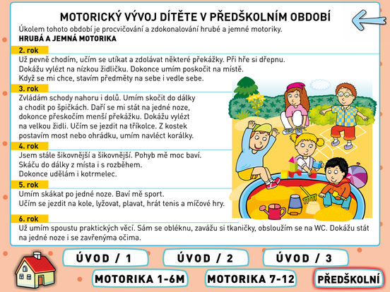Aplikace je určena dětem předškolního věku a najdete v ní soubor cviků spojených s jednoduchou básničkou. Básničky jsou rytmické a nenásilně dítě vedou v jednotlivých pohybových aktivitách. Pomáhají rozvíjet pohybové dovednosti dítěte a zdokonalovat jeho mluvený projev. Díky nim se pohyb pro dítě stává hrou. Ale tím nejpodstatnějším je čas, který dítěti věnujete, čas vzájemného sdílení při společné aktivitě. Přejeme vám hodně legrace s básničkami.