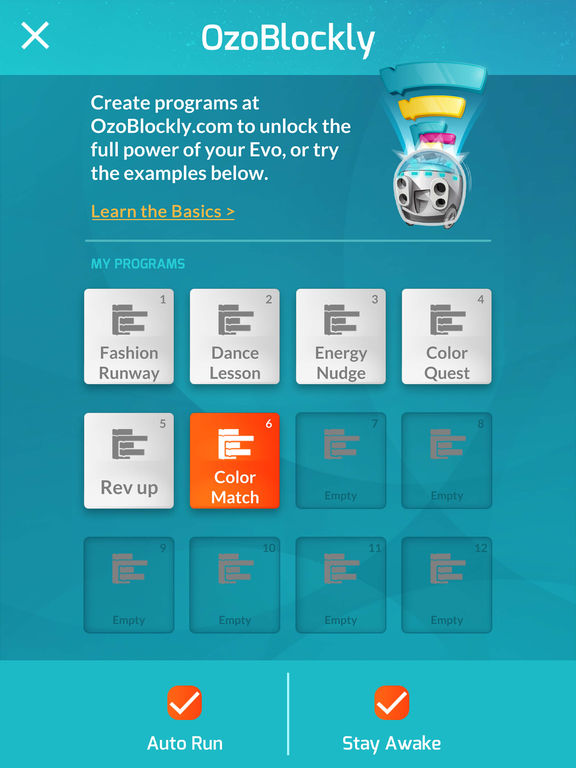 Play with code and teach Evo new tricks with OzoBlockly. Run programs from the app!