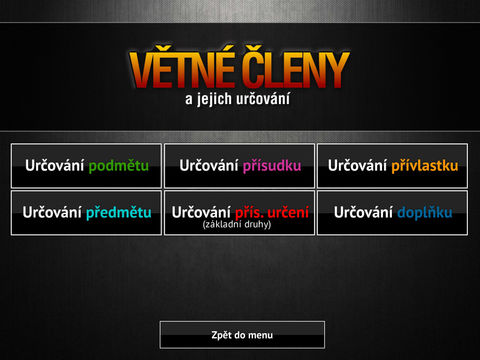 | Větné členy a jejich určování Jazyk aplikace:  čeština Cena: 25 CZK Dostupné: