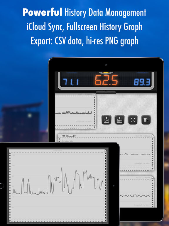 + Each record can be exported as hi-res PNG graph or CSV text via sharing services